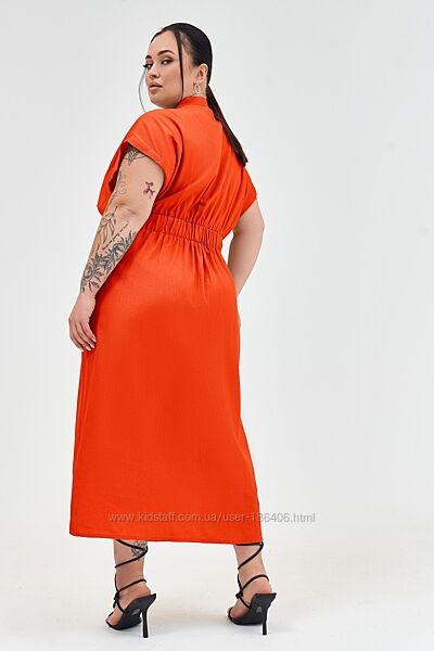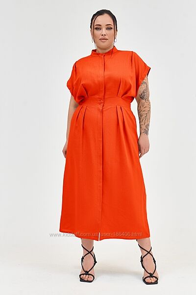 Подробное описание: Лляне міді плаття помаранчеве великий розмір