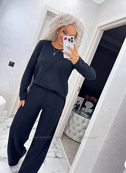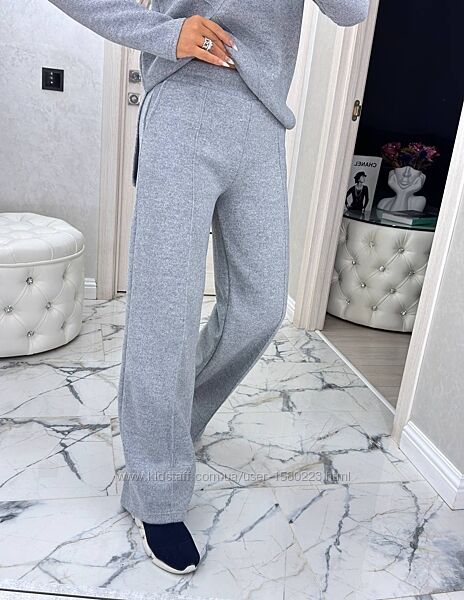 Брючний костюм із ангора-в’язки — це поєднання класичного стилю, затишку та сучасної елегантності. Модель виготовлена з щільної, м’якої та еластичної трикотажної тканини, яка приємна до тіла, не подразнює шкіру, не викликає алергії та не кошлатиться. Матеріал гарно тримає форму, не втрачає насиченості кольору й має охайний вигляд