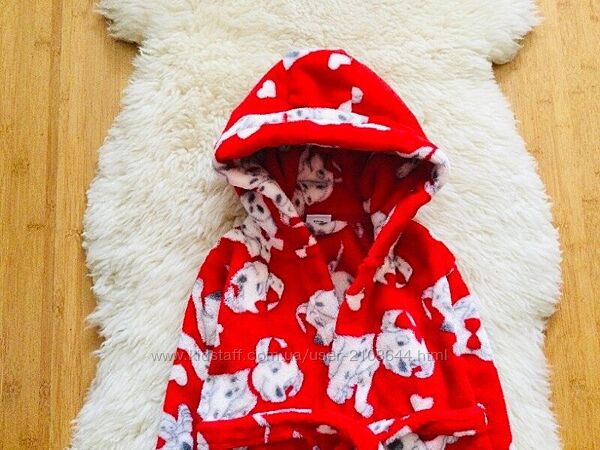 Primark 1-2 рок халат з вушками на капюшоні. флісовий, махровий, пухнастий, теплий, банний, на море або в басейн. Стан: нового, зав´язується на талії пояском. є Капюшон. рожевий довжина 51; рукав від вороту 35червоний довжина 52; рукав від вороту 40