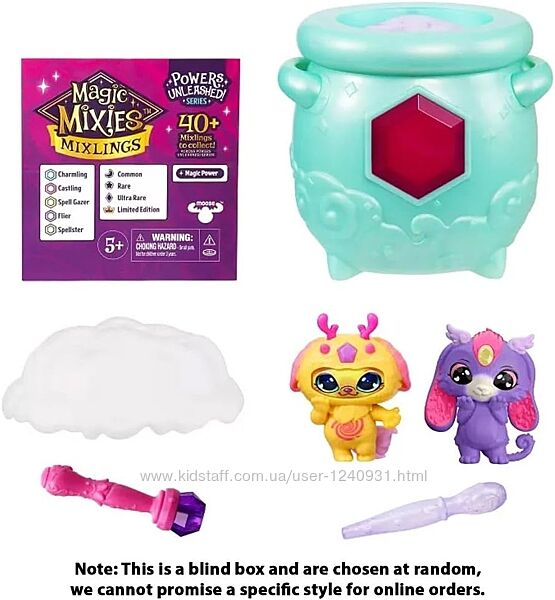 Доторкніться до своєї внутрішньої магії, щоб створити власні мікслінги! Потріть дорогоцінним каменем Котел, щоб дізнатися, чи звичайний, Рідкісний чи Ультрарідкісний ваш Змішувач, потім торкніться Котла та скажіть чарівні слова «Magicus Mixus», щоб магічним чином дізнатися, хто всередині Котла!