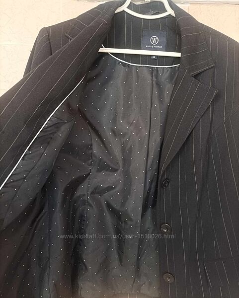 Продаю женский пиджак. Классический крой, черного цвета в полоску. Размер 40. Состав: вискоза 32%, полиєстер 65%. Состояние идеальное.Не секонд - разгружаю шкаф!