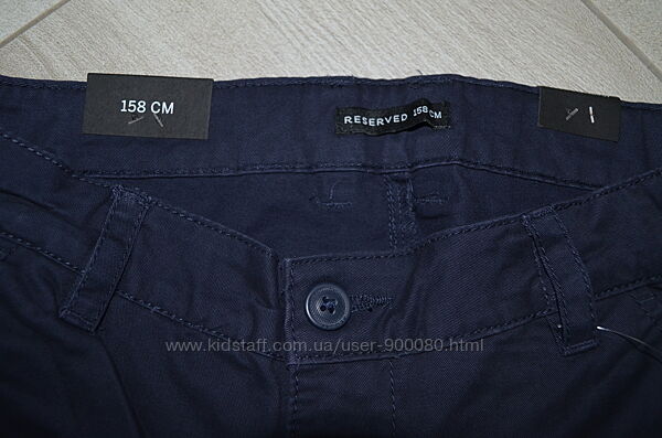 Штани reserved на зріст 158 см 12 років, 100% бавовна, колір синій.Довжина по зовнішньому краю 97 см, довжина по внутрішньому краю 71 см, ширина пояса 37 см, ширина стегон 44 см, є утяжка, 2 кишені.