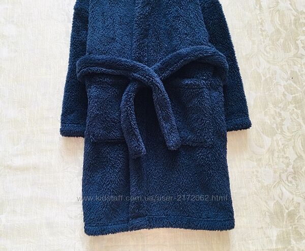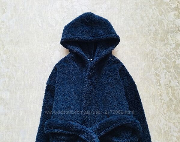 Next 5-6 рок флісовий, махровий, пухнастий халат теплий, банний, на море або в басейн. Стан: нового, слідів носки нема, зав´язується на талії пояском. є Кишені.синій довжина 70; рукав від вороту 50