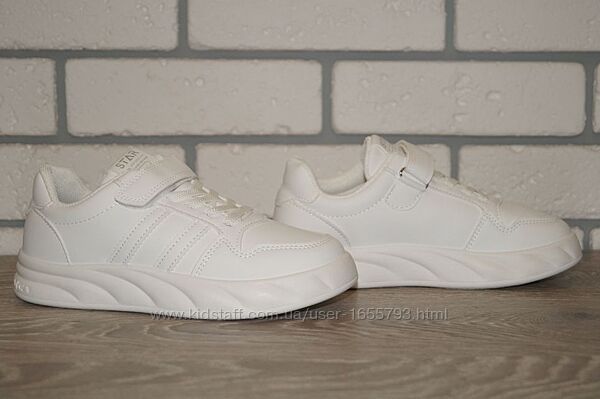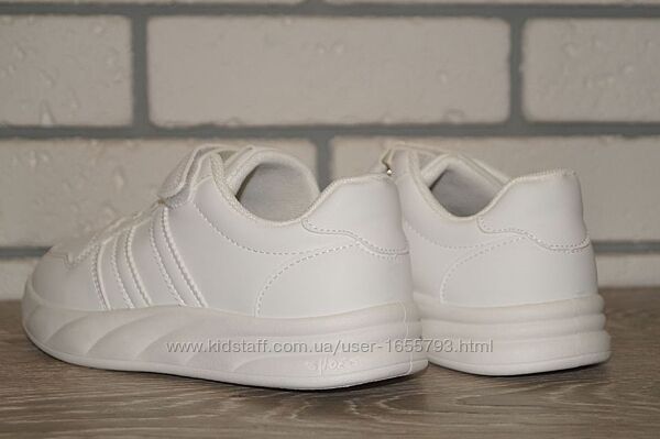 Кросівки дитячі демісезонні білі. Мають якісне пошиття, зручну колодку та неймовірно стильний вигляд, який допоможе створити багато образів у casual-стилі.Пошиті із штучної шкіри високої якості. Усередині текстильна підкладка та устілка. Жорсткий задник добре тримає форму. Кросівки легко взуваються і фіксуються на ніжці за допомогою ремінця з липучкою та еластичної шнурівки. Підошва легка та гнучка, антиковзна.