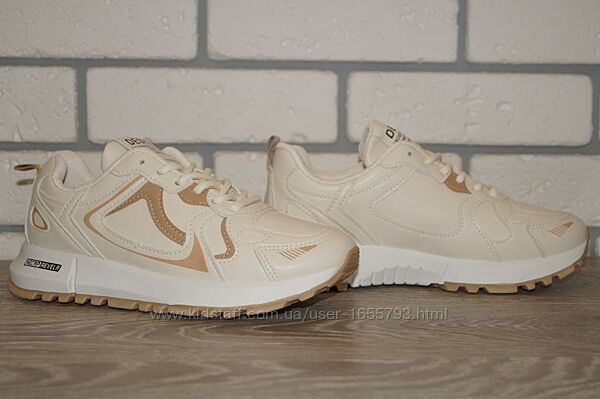 Оригінальні жіночі демісезонні кросівки. Стильний спорт-кежуал дизайн чудово поєднується як зі спортивним, так і з повсякденним одягом. Бежевий колір із коричневими деталями відмінно комбінується з будь-якими іншими кольорами та є універсальним.Пошиті із штучної шкіри високої якості. Усередині текстильна підкладка та устілка. Застібаються на зручну шнурівку, підійдуть на ніжку будь-якої повноти та підйому. Легкі та гнучкі – не обмежують рухів.