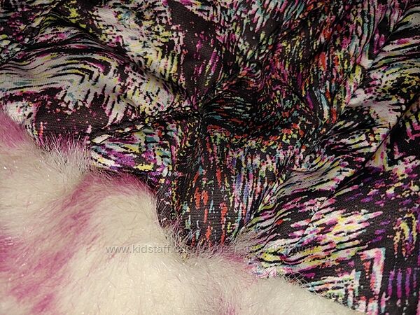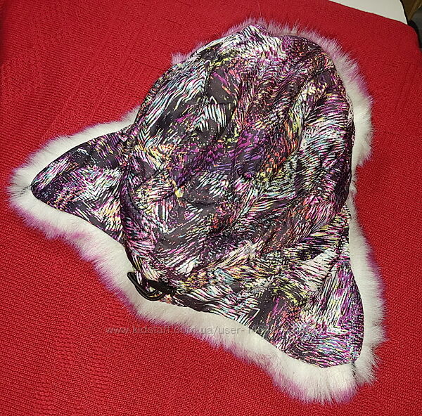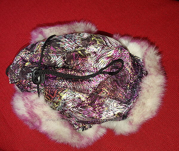 По периметру изделие отделано разноцветным искусственныммехом, кроме этого для подгона размера по объёму головы, есть круглая резинка,