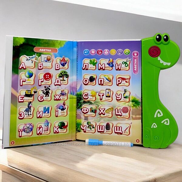 Кожна кнопка абетки має 3 режими. Регулювання гучності. Тип живлення - 3 батарейки "ААА" (не додаються).