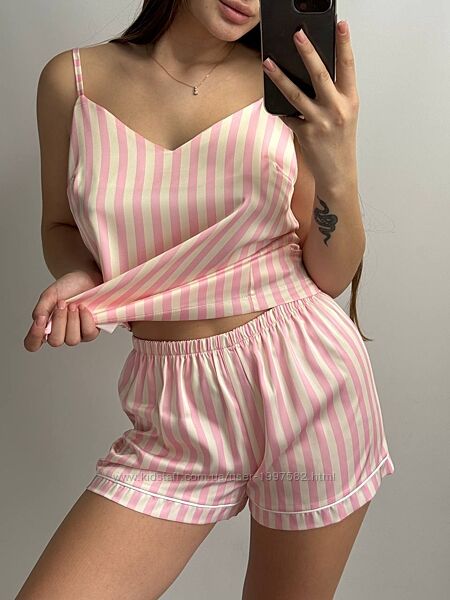 175/24 Сатин майка з шортиками. Майка вільна, на брителях яку регулюються.