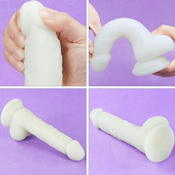 Фалоімітатор Lumino Play - унікальна іграшка для яскравих нічних задоволень. Його головна перевага - здатність світитися в темряві, завдяки чому кожна гра стає по-справжньому незабутньою. Цей фалоімітатор наповнений нетоксичним світловим порошком, який випромінює ніжне блакитне світіння, створюючи особливу атмосферу в темряві.Виготовлений із безпечного для тіла платинового силікону, Lumino Play підходить для вагінальної та анальної стимуляції. Його реалістична текстура з прожилками забезпечує посилені тактильні відчуття, а м´якість і гнучкість матеріалу роблять використання комфортним і приємним. Міцна основа з присоскою забезпечує надійну фіксацію на будь-якій гладкій поверхні, а також сумісність з ременями для різноманітних ігор.