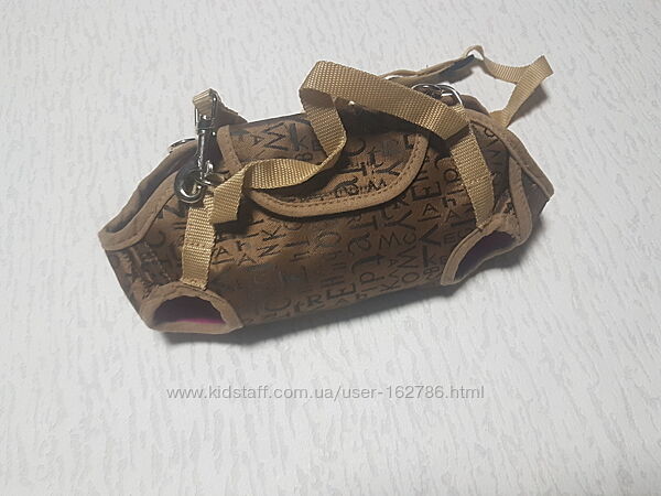 Сумка-перноска для малих порід собак та котів. Розмір М 2-3кг. Добре триває форму. Верх-тканина принтована, підклад-фліс. Дві коротки ручки та одна довга на карабінах регулюється. Заміри на фото. Стан бв гарний, без недоліків.