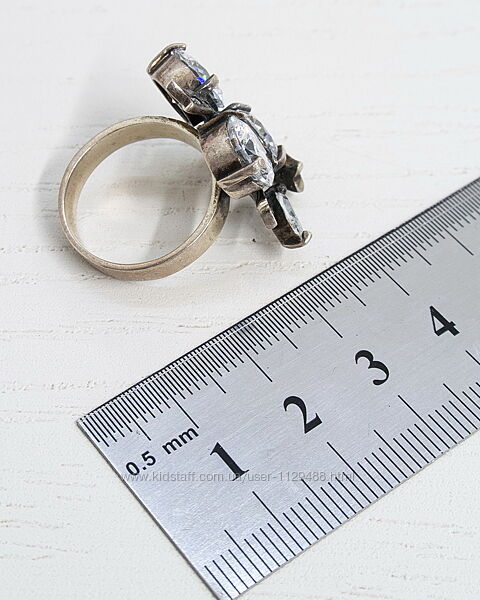 Подробное описание: Кольцо серебряное крупное, перстень с цирконом, Украина.