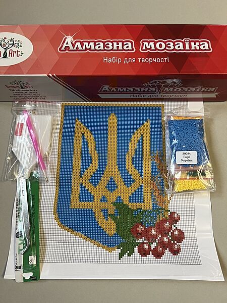 Подробное описание: Алмазна мозаїка Герб України 25,5 х 26,5 см
