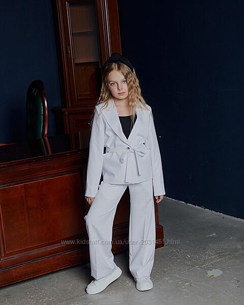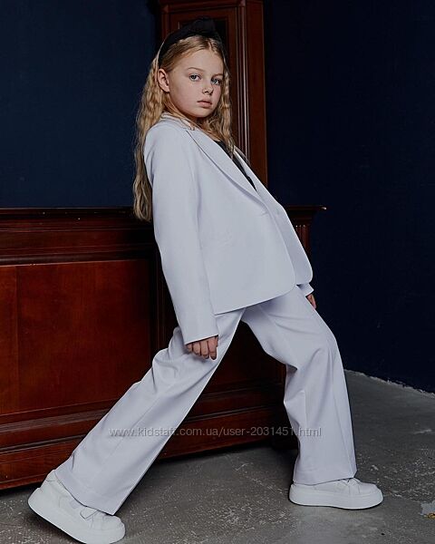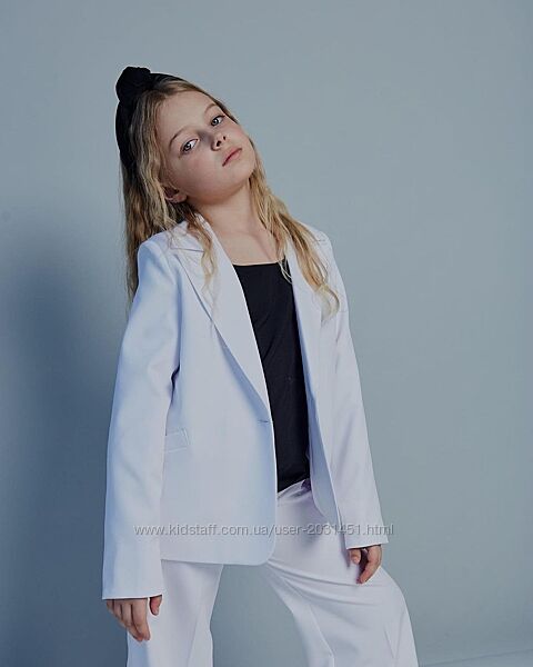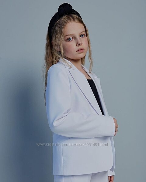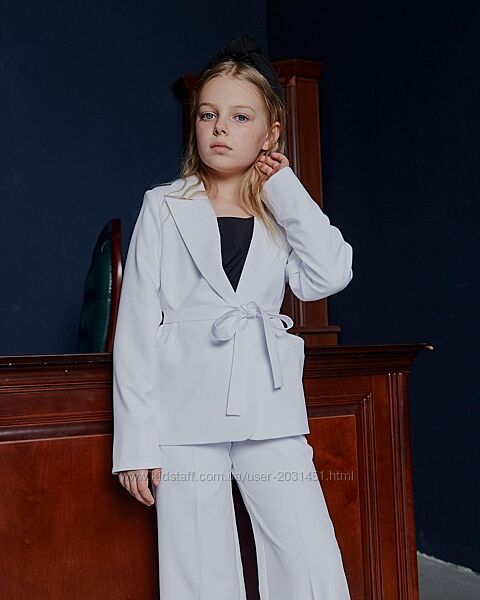 Подробное описание: Костюм - двойка детский брючный нарядный для девочки, пиджак, брюки, белый