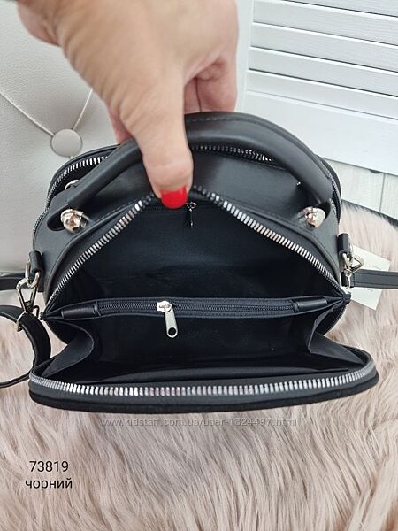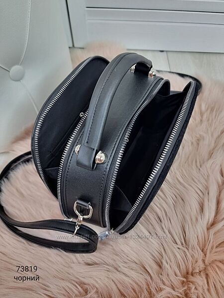 СКЛАД: Два відділи і між ними кишеня-перегородка на блискавці, зверху сумка закривається на 2 блискавки. Всередині є відкрита кишеня і кишеня на блискавці.