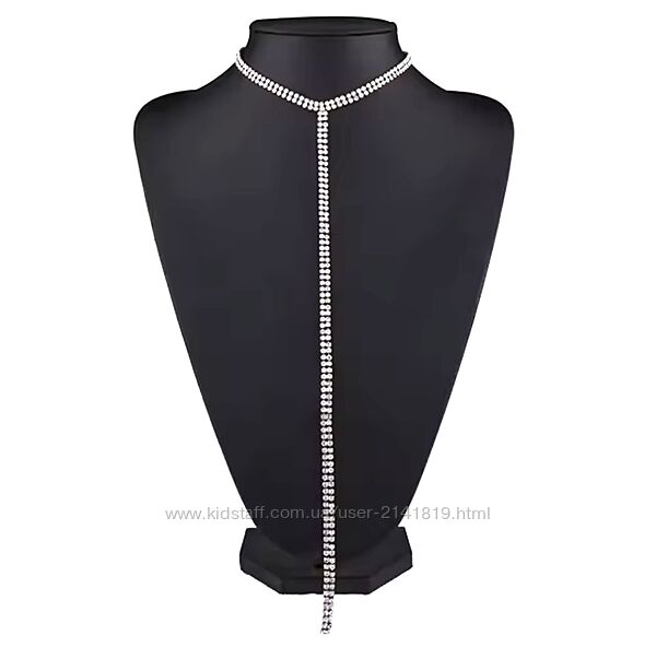 Блестящий длинный чокер галстук - идеальное украшение на шею для любой женщины, элегантное и модное дополнение к любому образу.Размеры: основание чокера 25 см + 25 см цепочка застежка удлинитель, посредине 26 см
