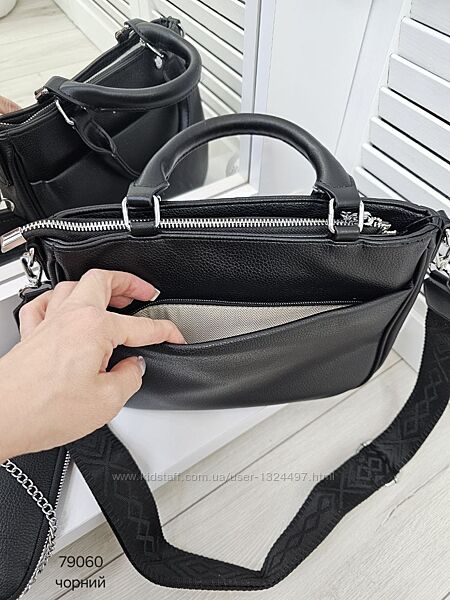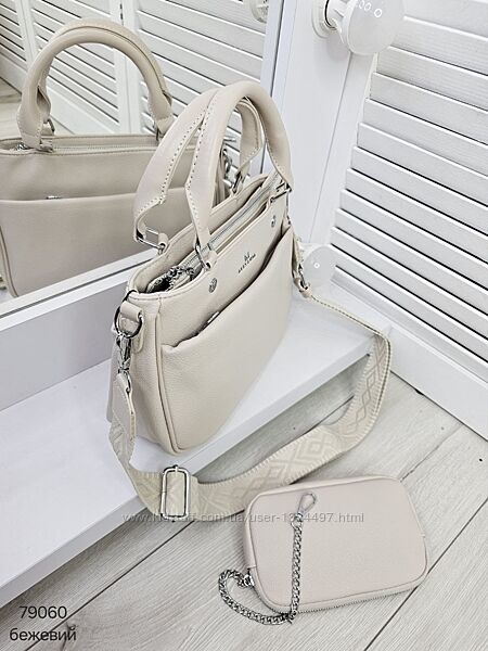 Стильна сумка з гаманцем на ланцюжку, гарно тримає форму КОД: 79060ФУРНІТУРА: срібло