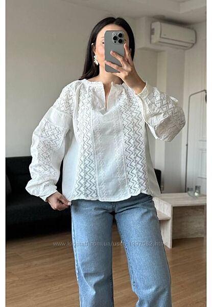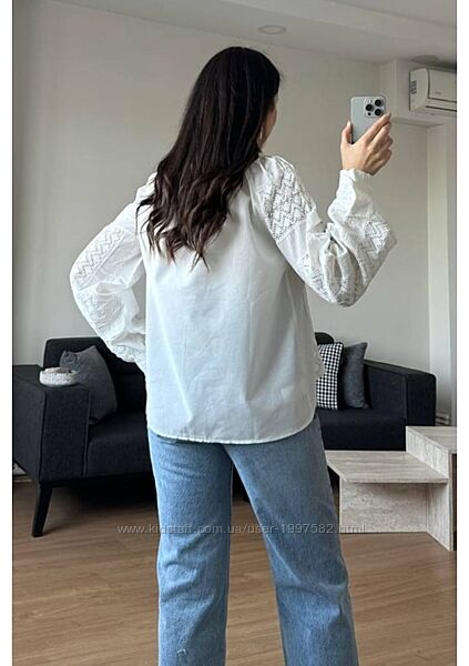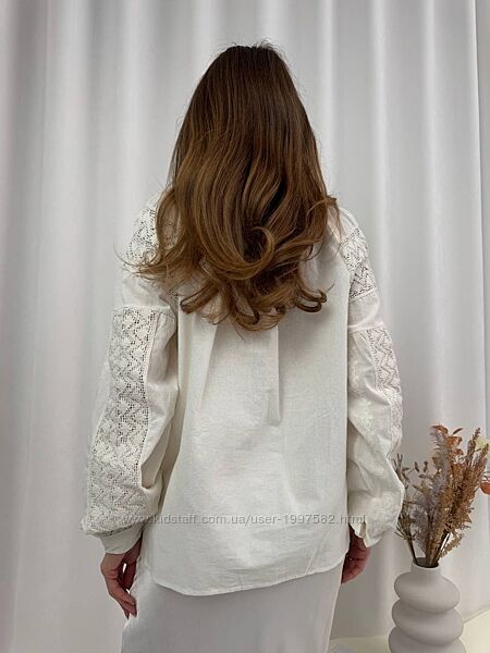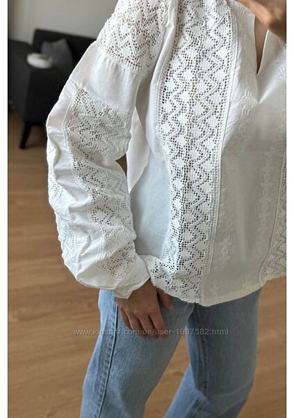 Подробное описание: Жіноча вишиванка сучасна мережка блуза вишита сорочка біла з мереживом