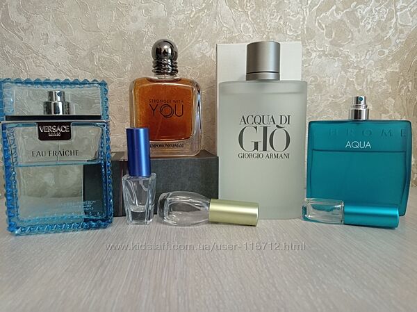 Відливанти оригінальних парфумів! Парфумерія для чоловіків! Відливаю від 3-5 мл, пробірки на 3мл - 5 грн, скляні флакони з металевим спреєм на 5, 10, 12, 15, 20 мл, 23-30 грн.Giorgio Armani Acqua di Gio Pour Homme edt - 30грн.