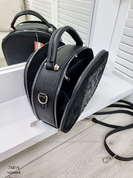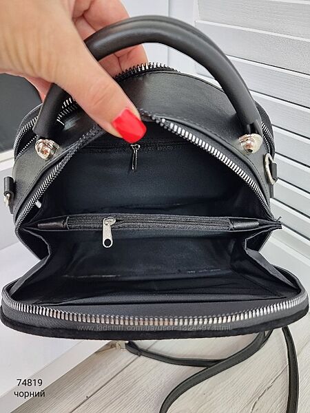 СКЛАД: Два відділи і між ними кишеня-перегородка на блискавці, зверху сумка закривається на 2 блискавки. Всередині є відкрита кишеня і кишеня на блискавці.