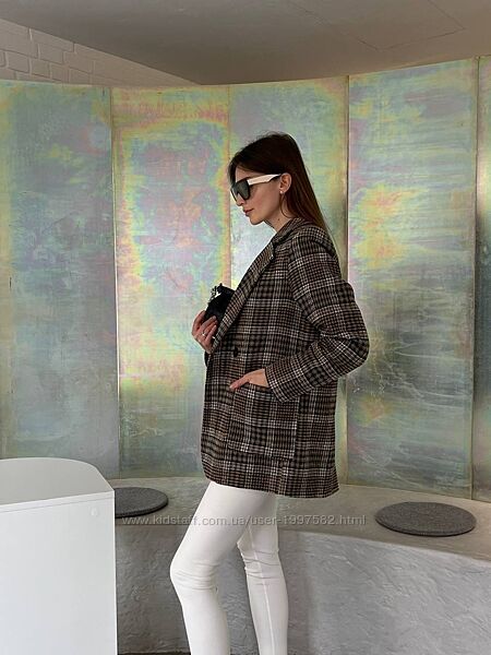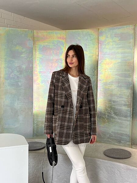 Подробное описание: Жіночий піджак твідовий в клітинку класичний подовжений жакет теплий