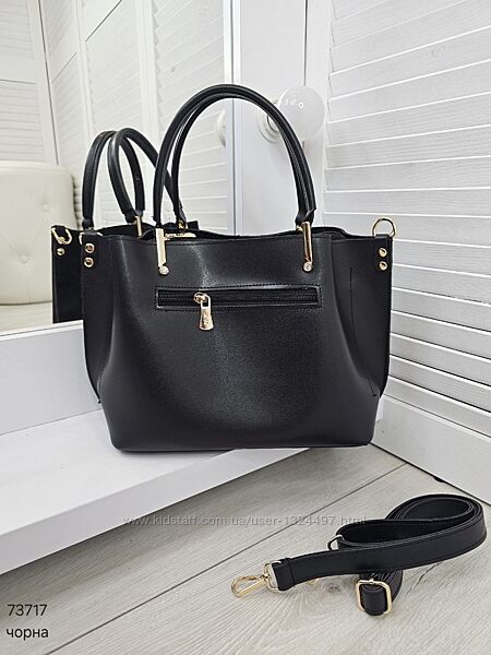СКЛАД: Три відділи, середній відділ зверху закривається на блискавку, а два інших відділи - на кнопку-магніт. Всередині є 2 відкриті кишені і кишеня на блискавці. З тильного боку - кишеня на блискавці.