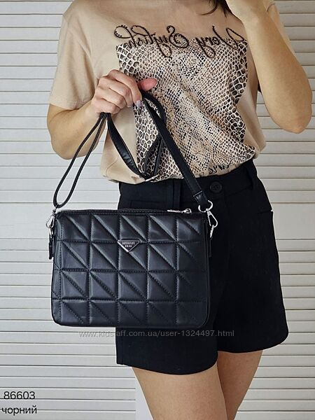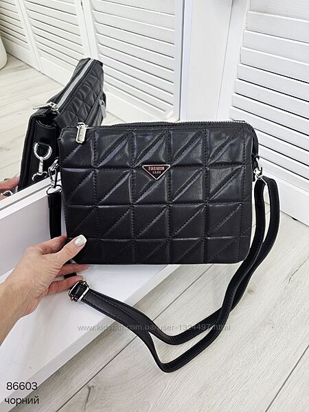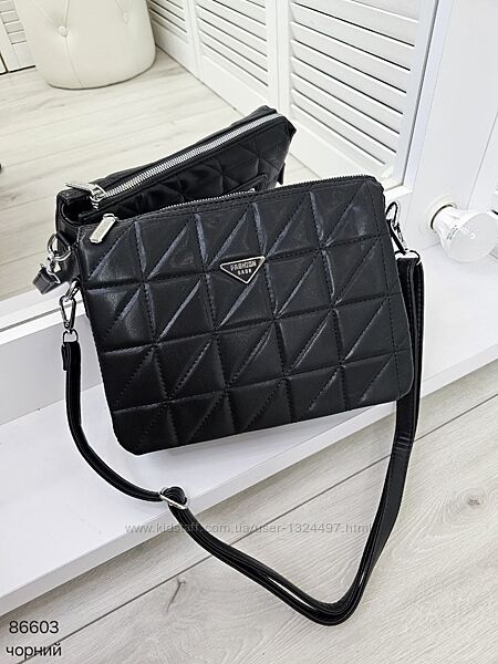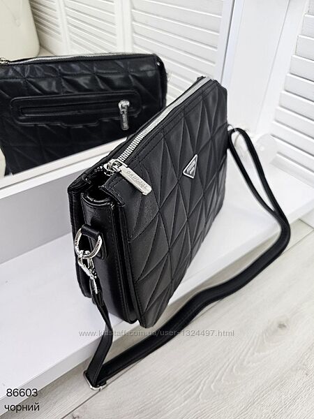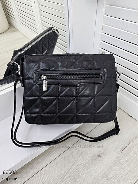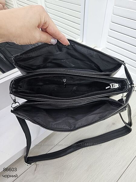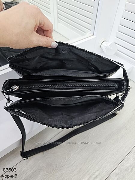 Зручний і гарний клатч крос боді на 3 відділи з приємної на дотик екошкіри Код: 86603ФУРНІТУРА: срібло