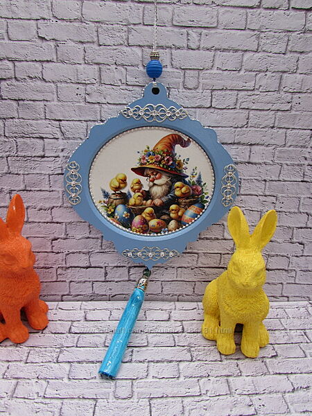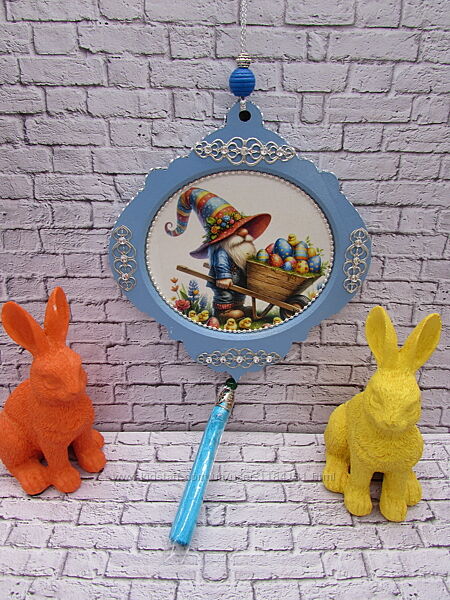 Велика фігурна підвіска із МДФ декорована у техніці вживлення зображення.Підвіска декорована з двох сторін.
