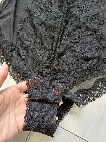 У продажу дуже красиве боді H&M, розмір по бирці вказаний 42. Колір чорний. Абсолютно м´яке боді з мережива та сітки. Тонка чашка з широкиммереживним переходом до плечей, між чашками V-подібна кісточка, ремені з