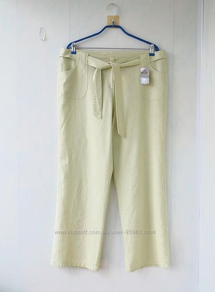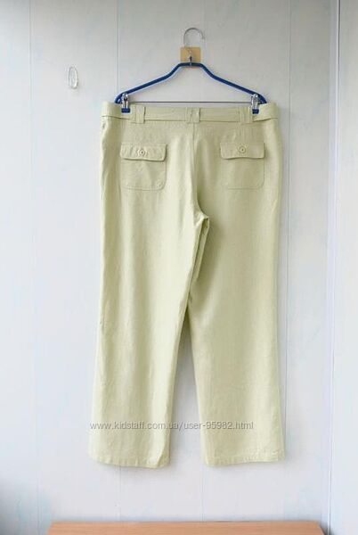 Лляні штани Mia Moda, 55% льон, 45% віскоза. Легка, приємна модель, ніжний салатний колір, є 2 кишені спереду, дві ззаду. На бирці розмір20, маломірить, йде максимум на 18. Орієнтуйтеся за замірами.