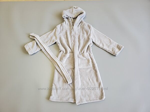Продається новий дитячий халат з капюшоном Розмір 98/104 Розмір 110/116 Халат дуже мякий та приємний на дотик, виготовлений з високоякісного матеріалу, що забезпечує тепло та комфорт. Ідеально підходить для використання після ванни або душу. Має капюшон, пояс, великі кишені. Колір- світло-сірий (підійде як і для хлопчика, і для дівчинки)