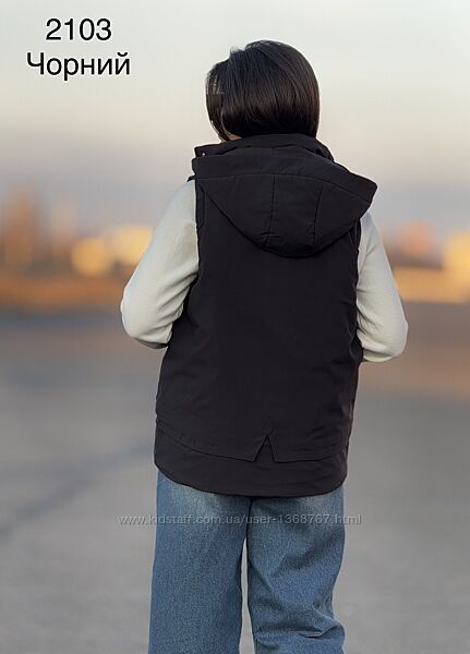 ЖІНОЧА ЖИЛЕТКАМодель з капюшоном та високим комірцем.