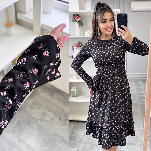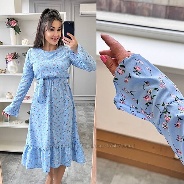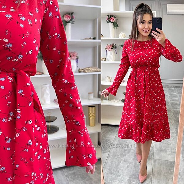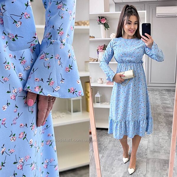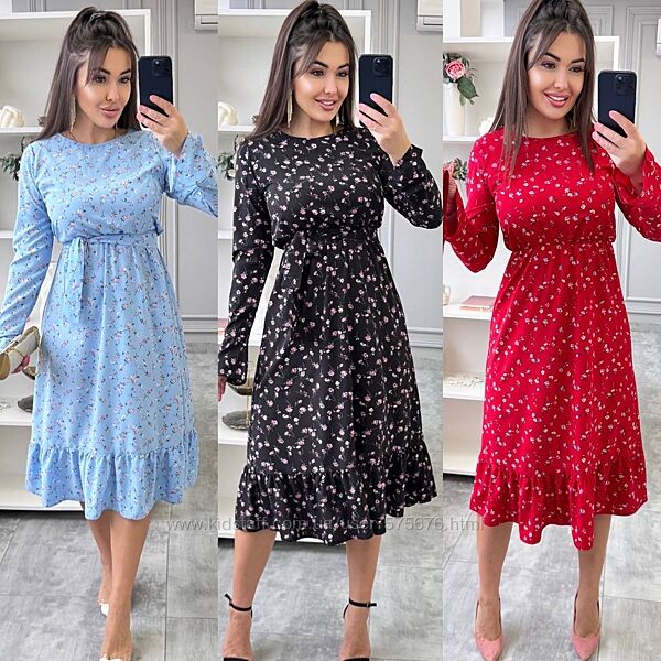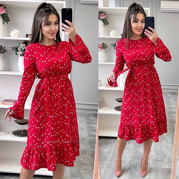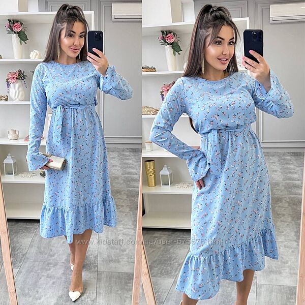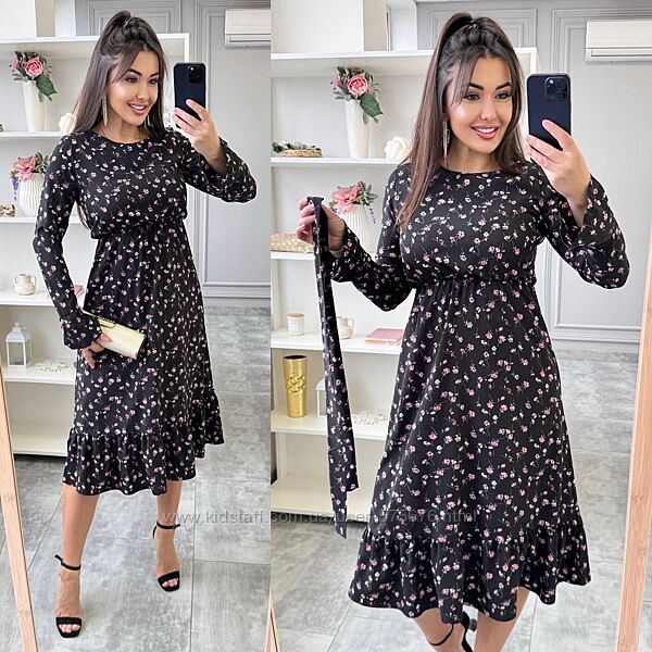 Плаття довжина міді, талія на резинці, тканина приємна до тіла, не просвічується, пояс йде окремо, не пришитий