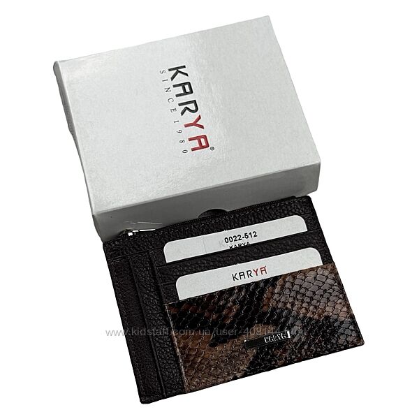 Гаманець картхолдер шкіряний Karya 0022-512 коричневий✔️ Материал натуральная кожа - структура зернистая крупная с вставкой под рептилию;