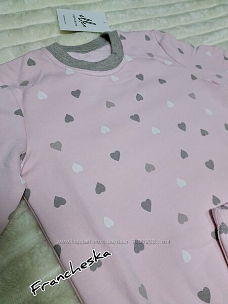 Піжама дитяча дівчинці на байці з колекції "SENTIMENT" (GPF 0582/02/02) від українського виробника Ellen.Байкова дитяча піжама з довгим рукавом виготовлена з якісного бавовняного полотна з принтом "сердець",всередені має байкове напилення. Піжама дитяча складається з кофти і штанів. Кофта з довгими рукавами та круглим вирізом горловини, рукава та горловина оброблені однотонними манжетами. Штани з м´якою резинкою в поясі, знизу на манжеті. Дитяча піжама дуже красива та комфортна, буде чудовим подарунком для коханої дитини.