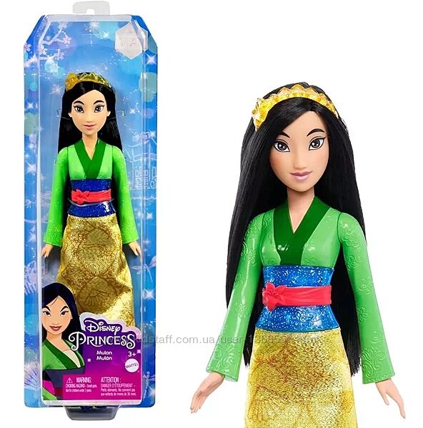 Лялька-принцеса Мулан Disney Princess неймовірно схожа свого персонажа з мультфільму. Вона одягнена в красивий традиційний костюм, має довге чорне волосся і миле личко.