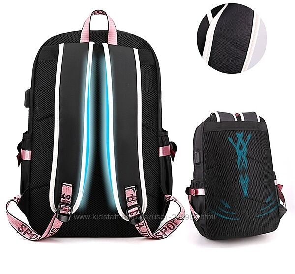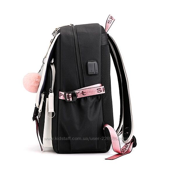 Подробное описание: Шкільний підлітковий рюкзак для дівчинки з USB-портом і хутряним помпоном