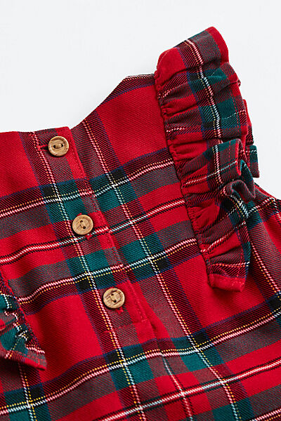 Сукня без рукавів із візерунчастої тканини з гудзиками ззаду на шиї, оборкою на плечах та присбореним швом спереду.Заміри: надаємо по запиту
