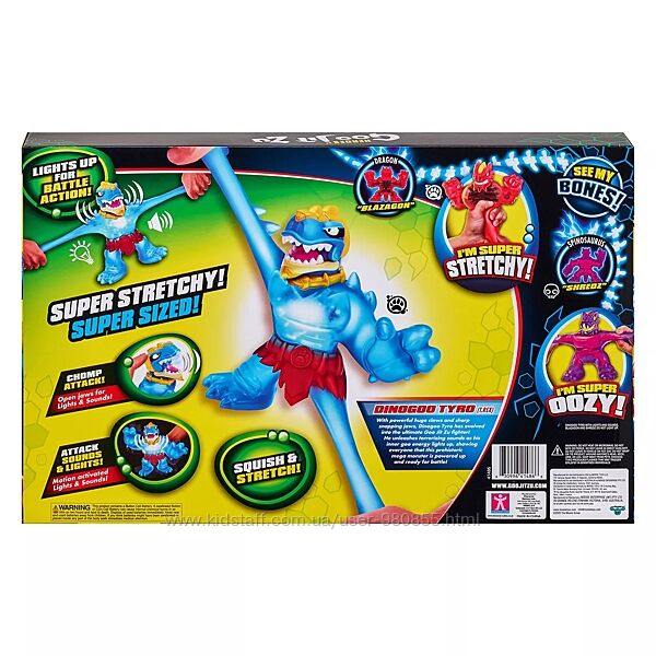 Всередині цієї дивовижної коробки-три герої Goo jit Zu: Shredz, Blazagon та супер розміром Tinogoo Tyro!