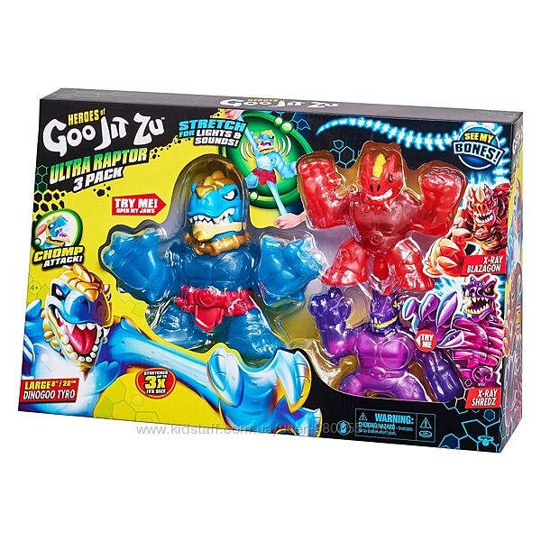 Набір Ultra Raptor 3 містить три доісторичні герої Гуджитсу і вразить будь-якого колекціонера. Будьте готові до деяких пригод "X-ray" та "Dino Power"