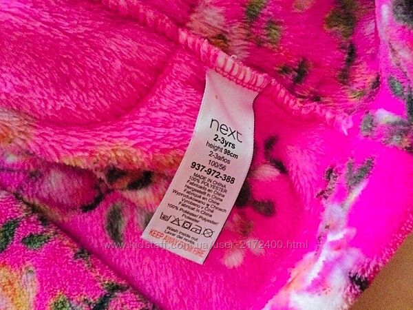 2-3 рок., Disney. Next флісовий, махровий, пухнастий халат з капюшоном. Стан: нового, зав´язується на талії пояском. є Кишені.Світло -сірий довжина 50; Рукав від вороту 40