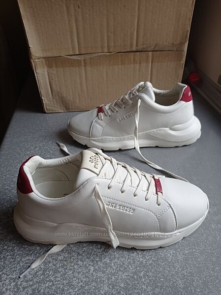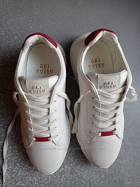 Кросівки Oki Kutsu, оригінал, відмінний стан, білі з червоним, високоякісна еко шкіра, класична шнурівка, висока прошита підошва, вологопоглигаючі устілки, дуже красиво виглядають на нозі, дуже легкі м´які та зручні, прекрасно підійдуть для занять спортом та повсякденної носки, унісекс, розмір EU 42.5, UK 9, довжина устілки 27 см, повна довжина 27.5 см.Другие объявления продавца