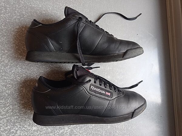 Кросівки Reebok Princess, оригінал, дуже гарний стан, всередині в районі великого пальця у підкладці є по дирочці, не критично і не на що не впливає, чорні з білим і червоним, високоякісна еко шкіра, класична шнурівка, вологопоглигаючі устілки, дуже красиво виглядають на нозі, дуже легкі м´які та зручні, прекрасно підійдуть для занять спортом та повсякденної носки, унісекс, розмір EU 38, US 7, UK 5, повна довжина устілки 24.5 см.Другие объявления продавца
