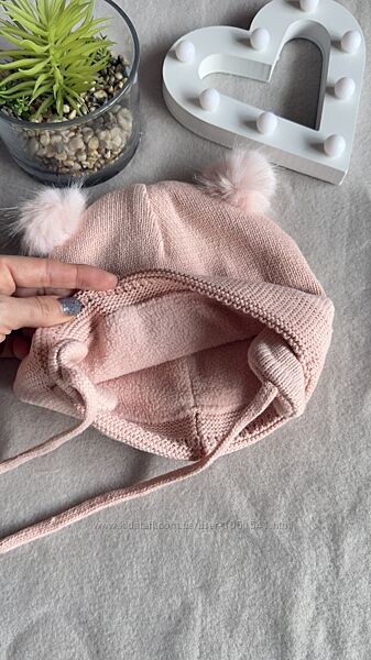 Подробное описание: Шапка рожева на флісі з помпончиками від h&m від 6 міс до 4 років