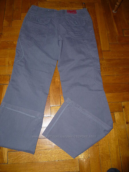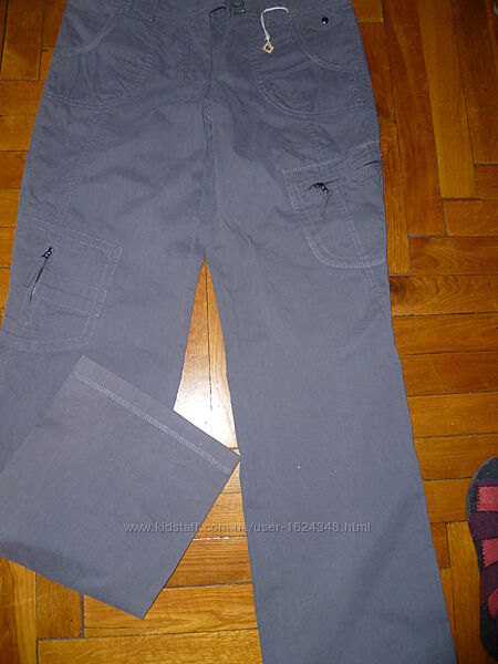 Жіночі брюки сірого кольору, розмір 38, полуокружність талії 39 см.,полуокружність бедер 49 см., довжина брюк по боку 109 см.,Кармани спереді, позаду та на голенищах. Склад виробу 75 % котон, 25 % поліестер. Виробник Германія. Стан нових.Другие объявления продавца