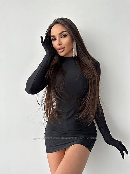 Подробное описание: Вечірня сукня міні облягаюча з довгим рукавом плаття з рукавичками