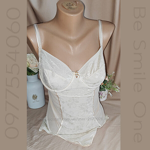 Заміри: півобхват під бюстом 34,5 см, довжина по боковому шву 37 см, довжина по переду 48 см, по заду 43 см, крісло 13, 5 см разом з застібкою. пот 37 см, поб 45 см