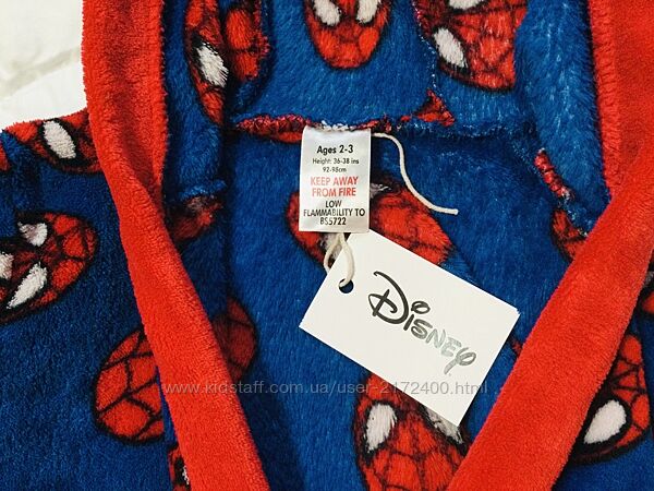 2-3 р., 92-98 зріст Disney флісовий, плюшевий, пухнастий халат з Людиною -Павуком, теплий, банний, на море або в басейн. новий з усіма бірками, зав´язується на талії пояском. є Кишені. довжина 58. рукав від вороту 41Другие объявления продавца