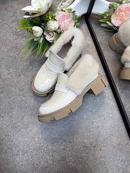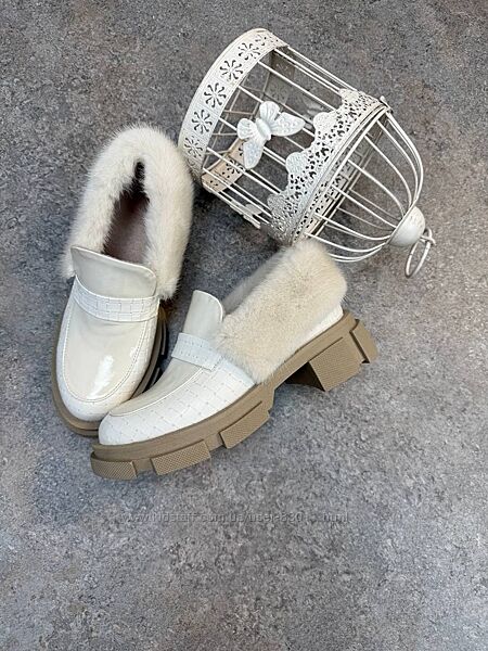 Подробное описание: Шикарні шкіряні лофери з хутром норки - від виробника