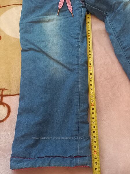 Теплі джинсові штани на дівчинку, стан задовільний, заміри на фото.