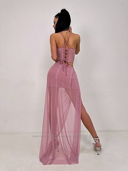 Подробное описание: Вечірній костюм зі спідницею максі з розрізом з корсетом